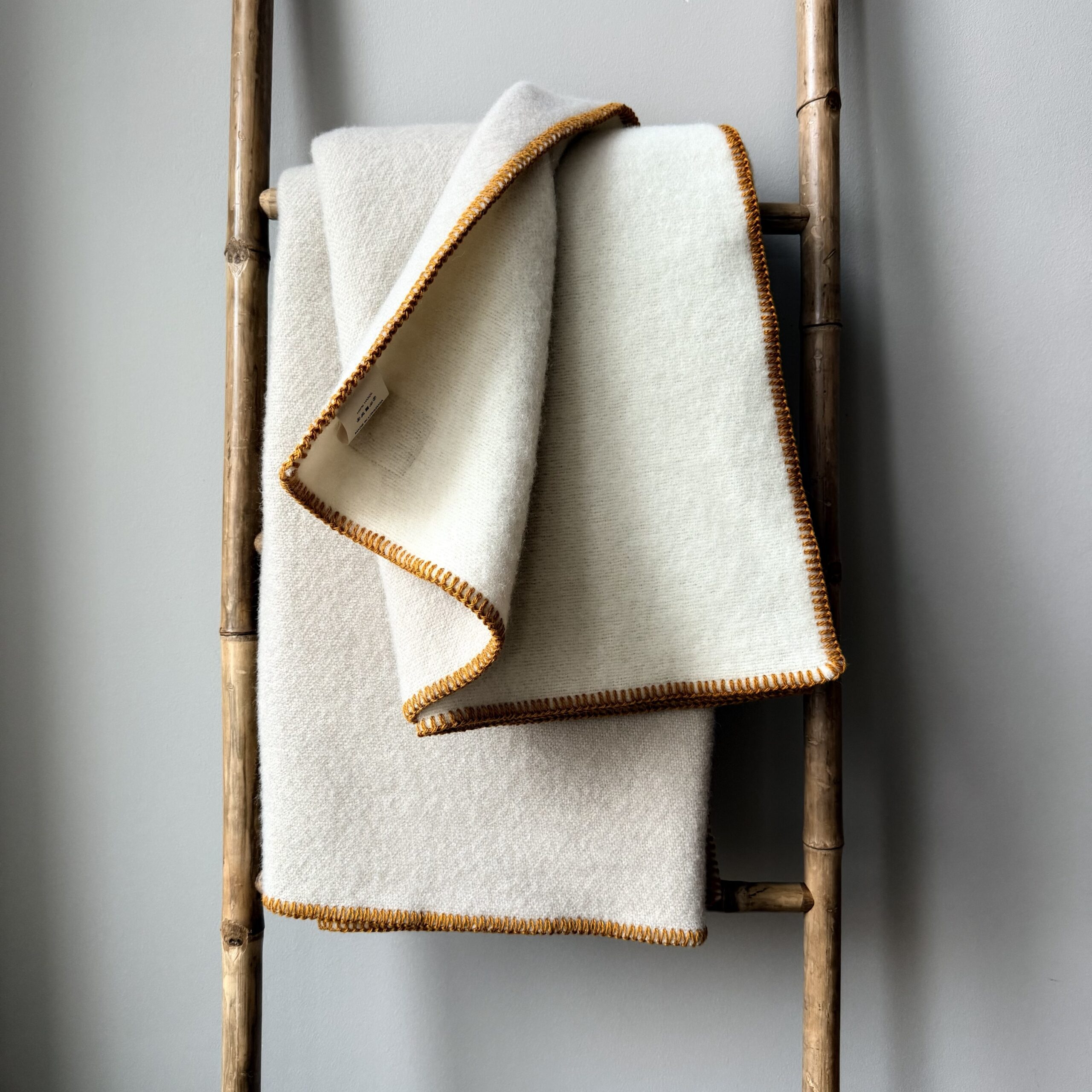 134,90 €JOWOLLINA Wendedecke Wolldecke Plaid Kuscheldecke Öko-Wolle 130×200 cm (Polka Dot beige)